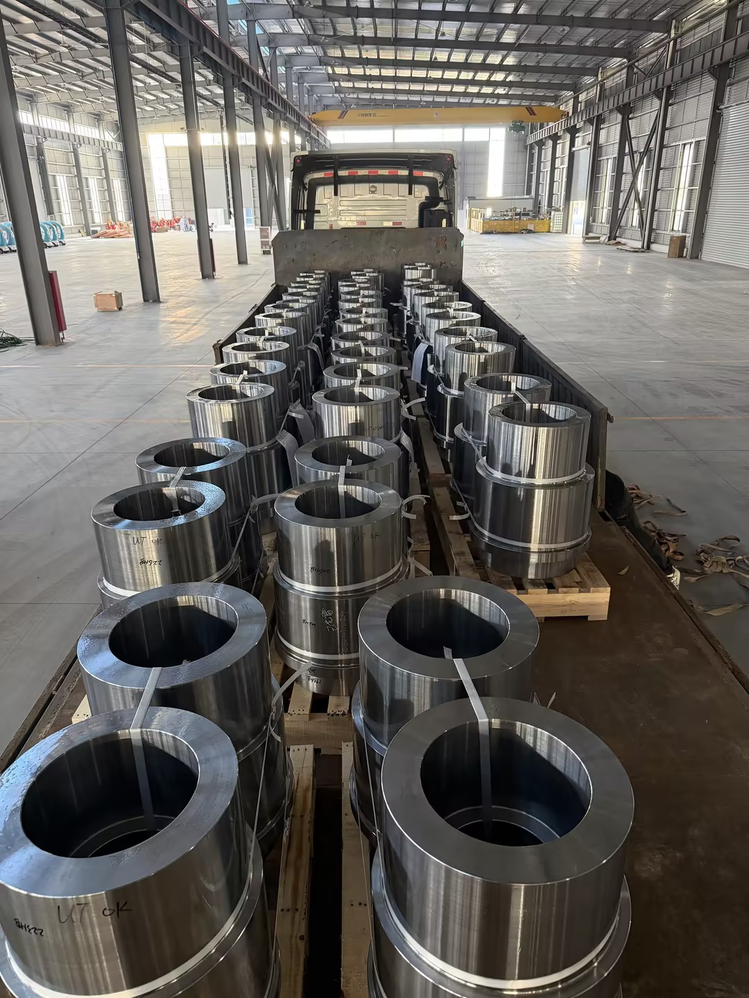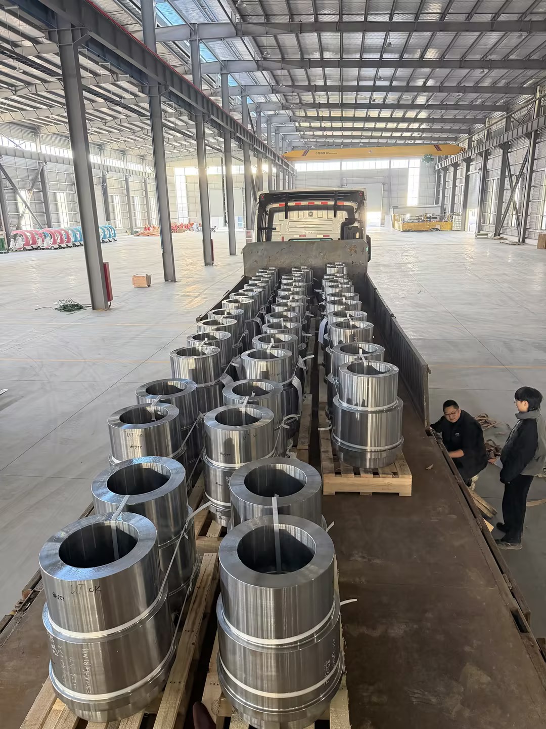 完成した鍛造リング部品の積み込みと出荷