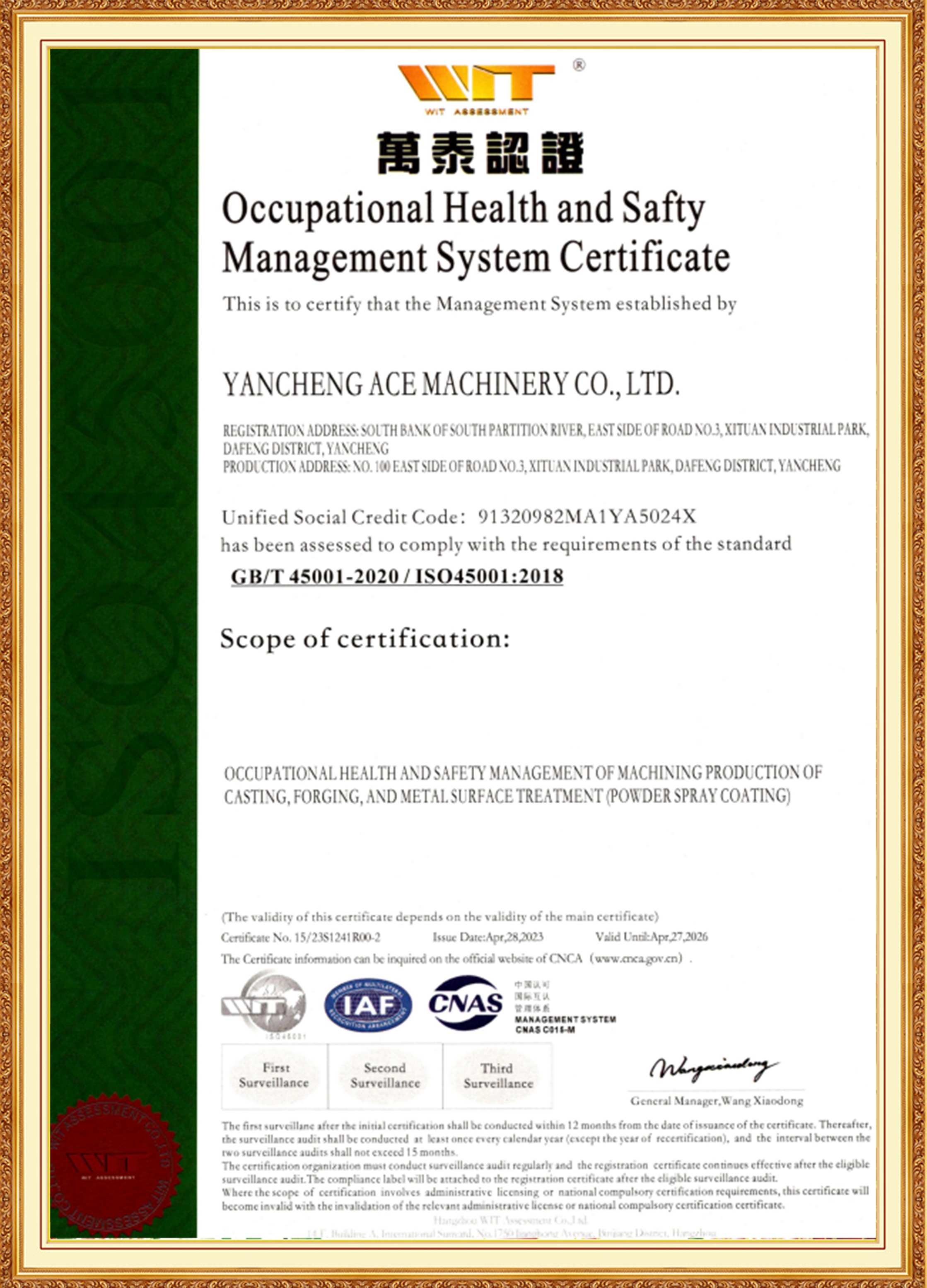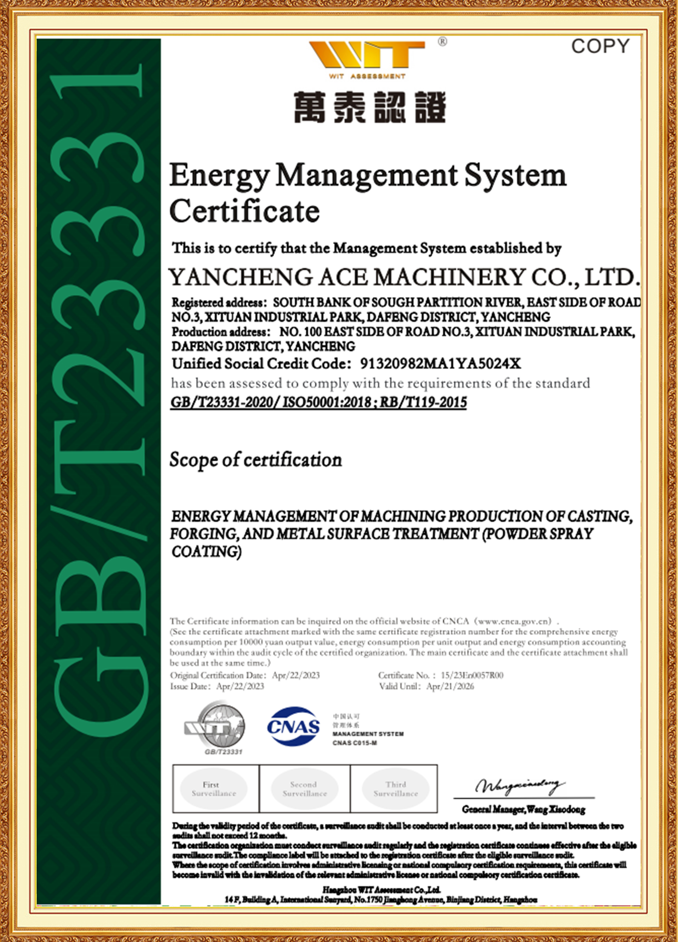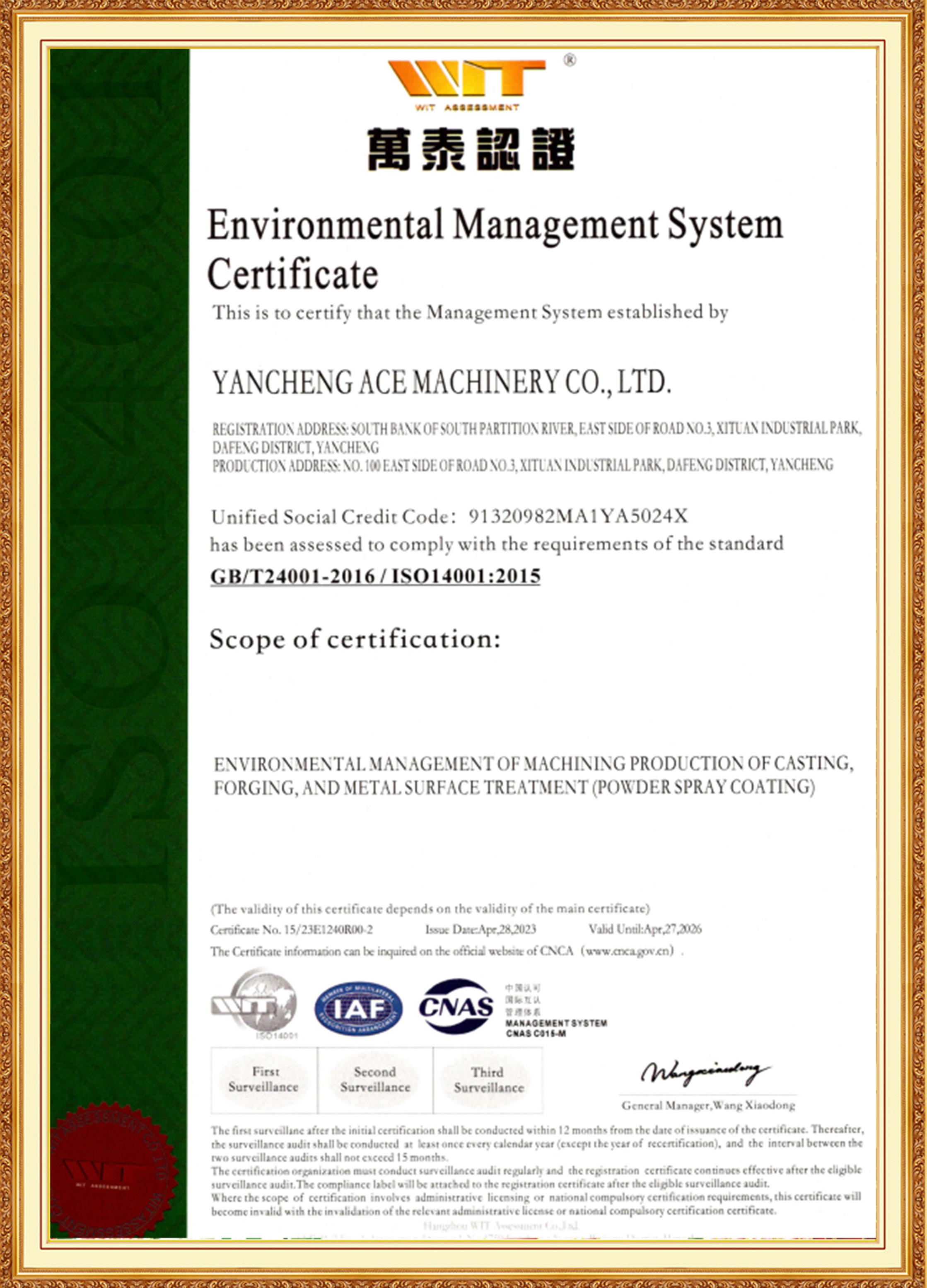 エースグループ 当社は、材料・熱処理・機械加工・表面処理業界の経験を積んだ若手中心メンバーで構成された経営陣によって支えられています。彼らは国際規格と国内規格に精通しており、先駆者であり、革新に熱心に取り組んでいます。子会社のACE Machineryは、テュフ ラインランドのISO 9001品質管理システム認証に加え、ISO 14001、45001、50001システム認証も取得しています。同社は、専門的で洗練されたユニークで革新的な企業、国家ハイテク企業として認められており、3A レベルの企業信用格付けを保持しています。
